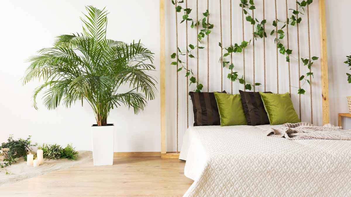 Já no quarto, as plantas naturais podem causar sujeira e dar trabalho para regar. Mas, com as plantas artificiais, você aproveita sua beleza e elimina os problemas. Portanto, na suíte do casal, buquês decorativos sobre criado-mudo, penteadeira, nicho ou prateleira são excelentes.